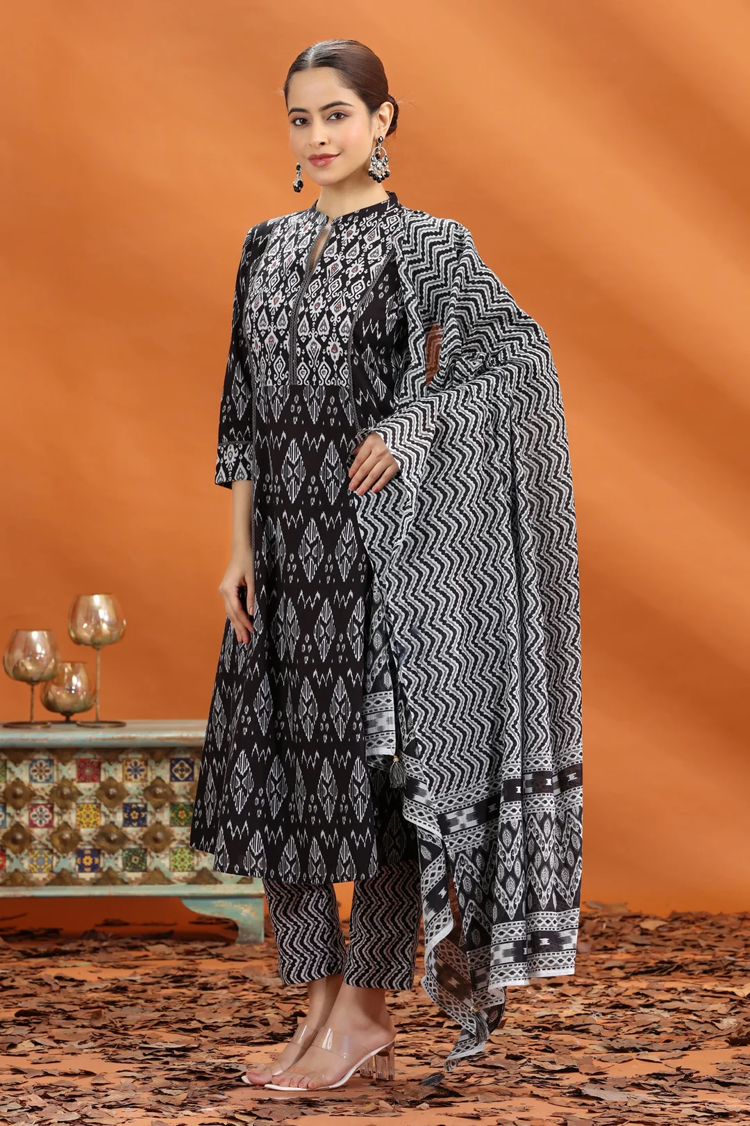 Be the first to review “Black Jaipuri Cotton Straight Printed Kurta Pant and Dupatta Set”